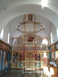 В настоящее время продолжается написание икон, обустройство трапезной на цокольном этаже храма.